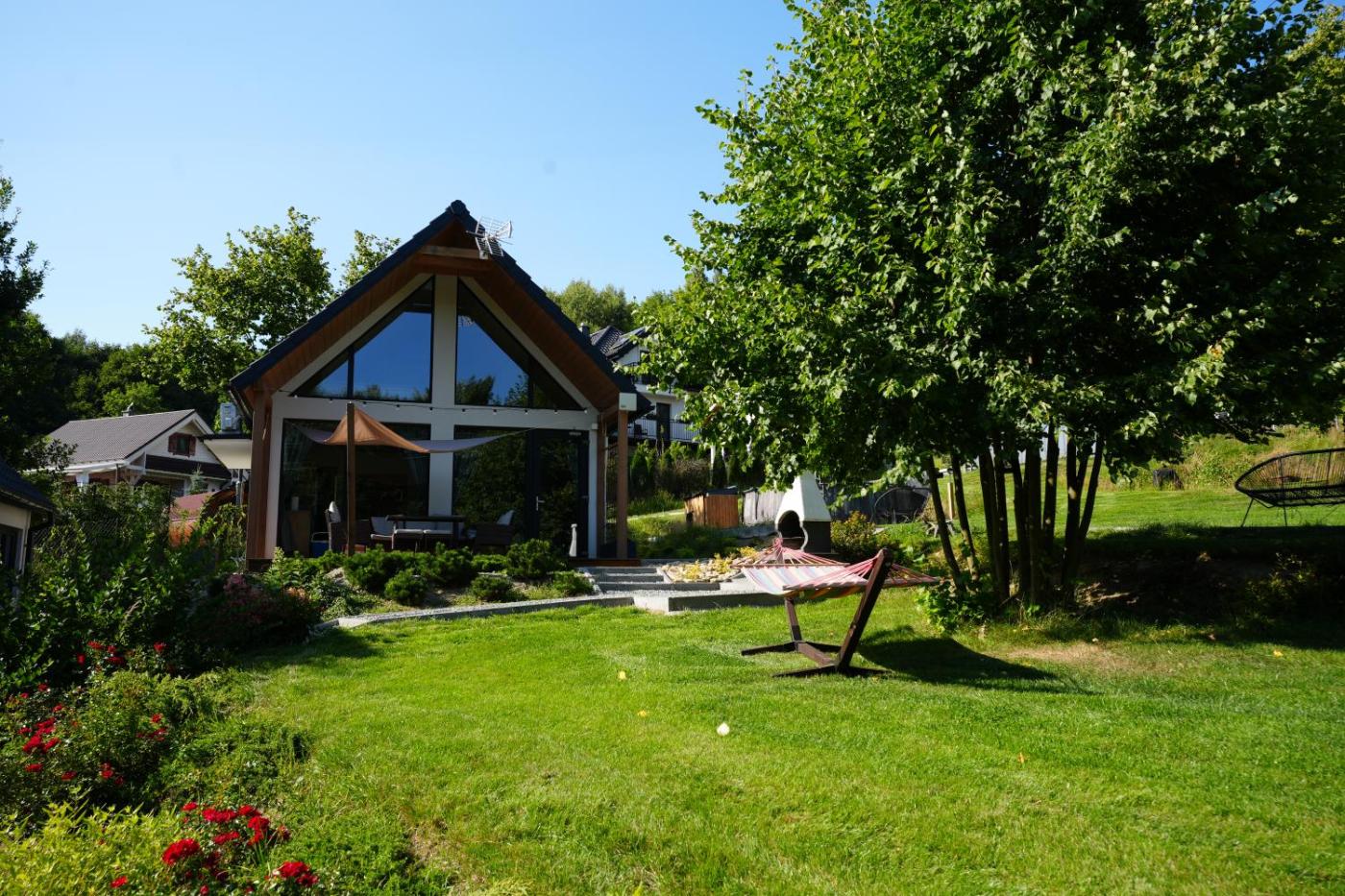 Dom z 2 sypialniami. Boasting a private entrance, this air-conditioned holiday home includes 1 living room, 2 separate bedrooms and 1 bathroom with a shower and a hairdryer. Guests will find a stovetop, a refrigerator, a dishwasher and kitchenware in the fully equipped kitchen. The holiday home also features a barbecue. Featuring a terrace with garden views, this holiday home also offers a tea and coffee maker and a flat-screen TV with streaming services. The unit has 4 beds. Dom wakacyjny - 7 osobowy. Powierzchnia pokoju ok.: 65 mkw. ;