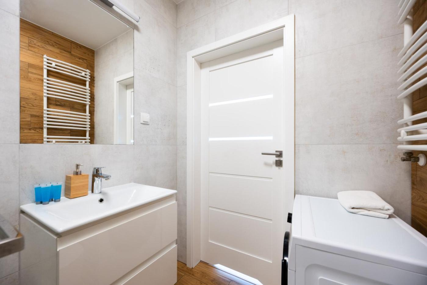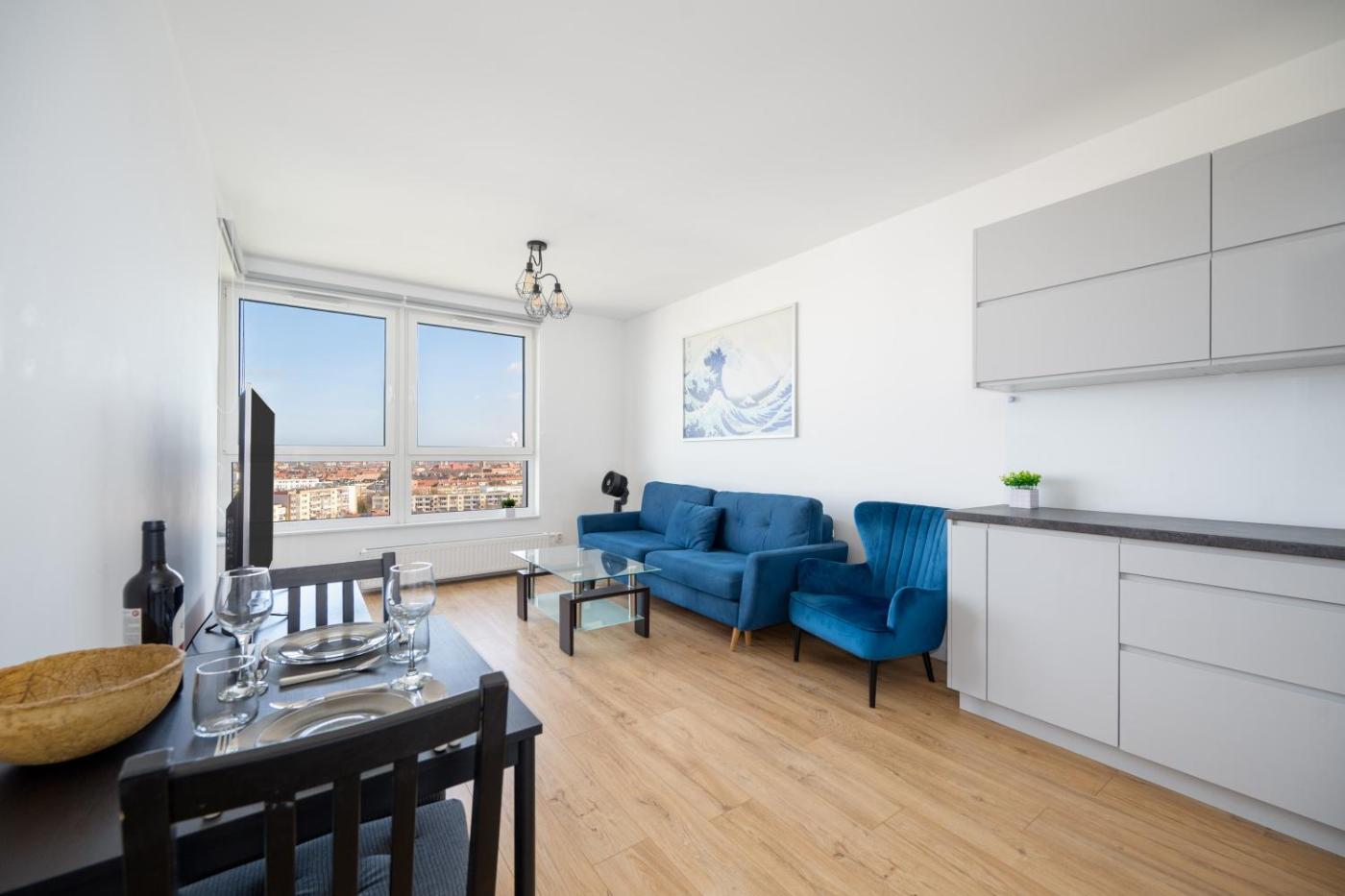 Apartament z 1 sypialnią i balkonem. This apartment comprises 1 living room, 1 separate bedroom and 1 bathroom with a shower and a hairdryer. Guests can make meals in the kitchen that is equipped with a stovetop, a refrigerator, a dishwasher and kitchenware. Featuring a balcony with city views, this apartment also provides a washing machine and a flat-screen TV. The unit offers 2 beds. Apartament - 4 osobowy. Powierzchnia pokoju ok.: 37 mkw.