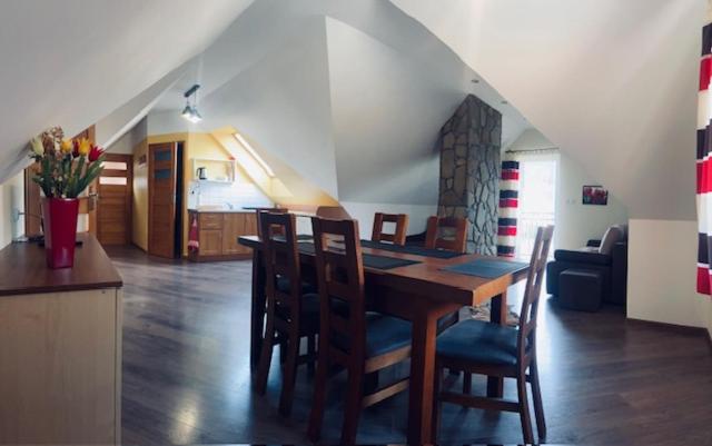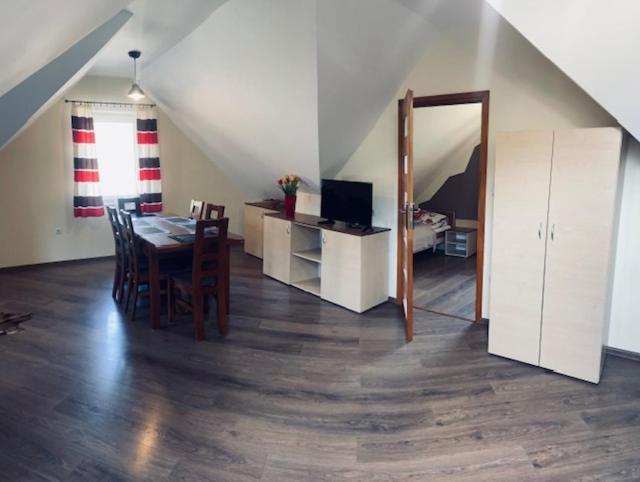 Rodzinny apartament typu Studio. The studios kitchenette, which features a refrigerator and kitchenware, is available for cooking and storing food. This studio includes a flat-screen TV with satellite channels, a private bathroom as well as a balcony with garden views. The unit offers 4 beds. Studio - 6 osobowy. Powierzchnia pokoju ok.: 50 mkw.