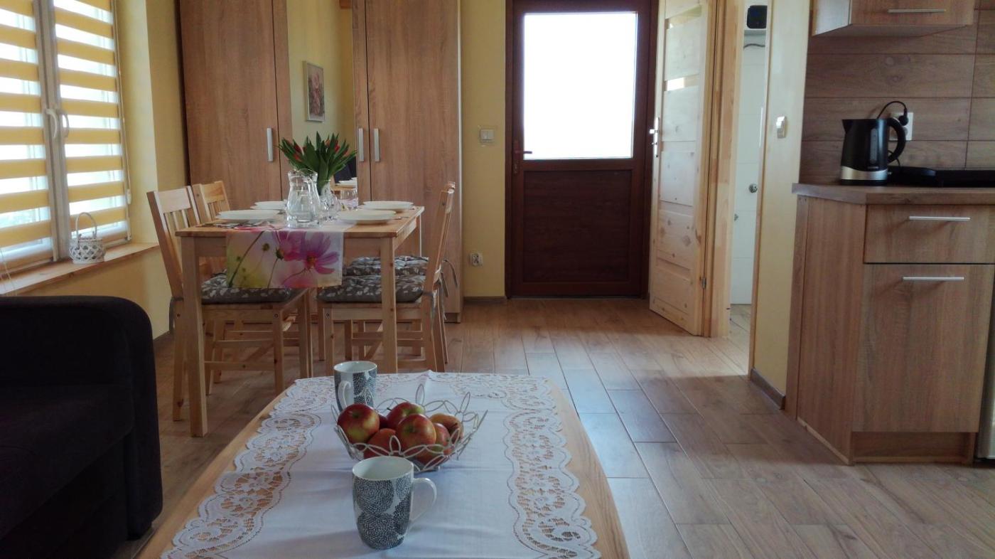 Domek. Featuring a private entrance, this air-conditioned chalet is comprised of 1 living room, 2 separate bedrooms and 1 bathroom with a shower and a hairdryer. Guests will find a stovetop, a refrigerator, a dishwasher and kitchenware in the well-fitted kitchen. The chalet also has a barbecue. Boasting a terrace with garden views, this chalet also offers a dining area and a flat-screen TV. The unit offers 2 beds. Domek - 4 osobowy. Powierzchnia pokoju ok.: 40 mkw.