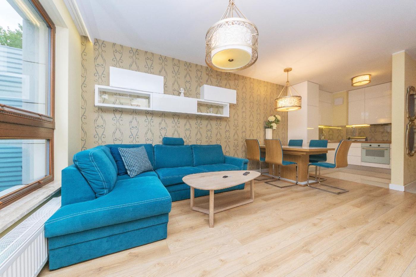 Apartament typu Deluxe z 1 sypialnią. Featuring a private entrance, this apartment is comprised of 1 living room, 1 separate bedroom and 1 bathroom with a shower and a hairdryer. The well-equipped kitchenette features a stovetop, a refrigerator, a dishwasher and kitchenware. The apartment offers a flat-screen TV with cable channels, a washing machine, soundproof walls, a coffee machine as well as garden views. The unit offers 2 beds. Apartament - 4 osobowy. Powierzchnia pokoju ok.: 49 mkw.