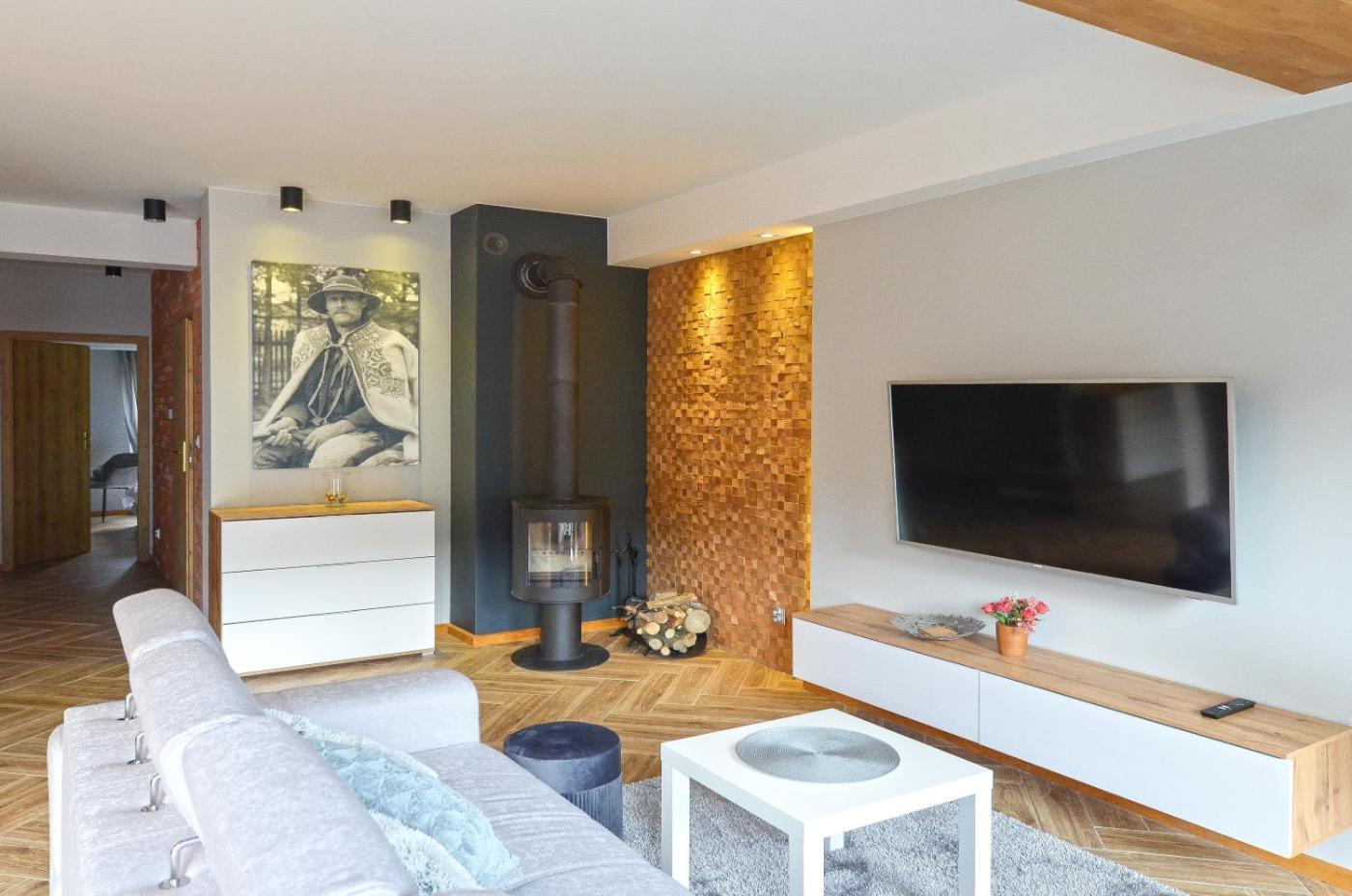 Apartament z 4 sypialniami. The sauna and fireplace are the special features of this apartment. This spacious apartment comes with 1 living room, 4 separate bedrooms and 2 bathrooms with a shower and a hairdryer. The well-equipped kitchen has a stovetop, a refrigerator, a dishwasher and kitchenware. Boasting a terrace with mountain views, this apartment also features a tea and coffee maker and a flat-screen TV with satellite channels. The unit has 5 beds. Apartament - 10 osobowy. Powierzchnia pokoju ok.: 100 mkw.