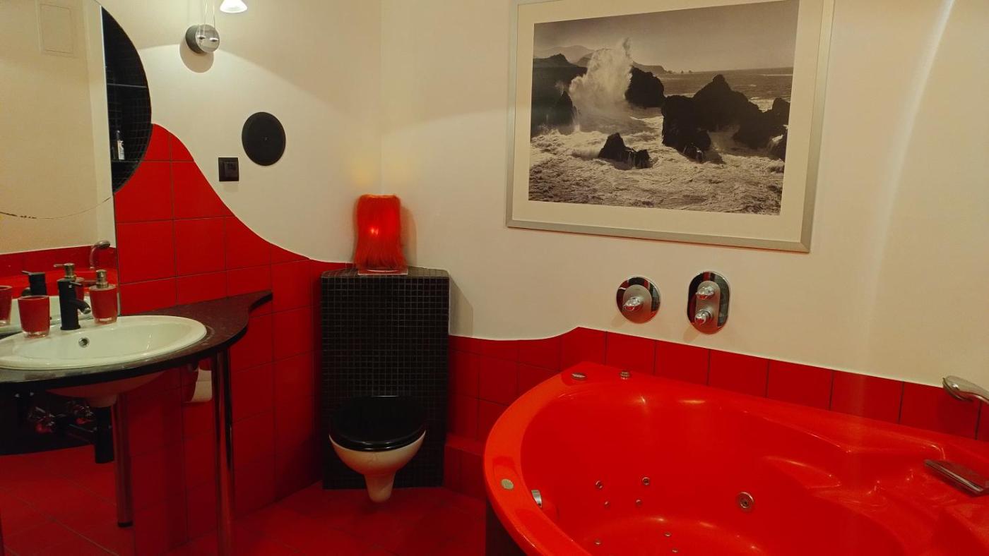 Apartament typu Deluxe Suite z wanną z hydromasażem. This suites standout feature is the hot tub. Boasting a private entrance, this air-conditioned suite includes 1 living room, 1 separate bedroom and 1 bathroom with a bath and a shower. In the well-fitted kitchen, guests will find a stovetop, a refrigerator, a dishwasher and kitchenware. The spacious suite offers a flat-screen TV, a washing machine, a tea and coffee maker, a seating area as well as city views. The unit has 1 bed. Apartament typu Suite - 2 osobowy. Powierzchnia pokoju ok.: 55 mkw. ;