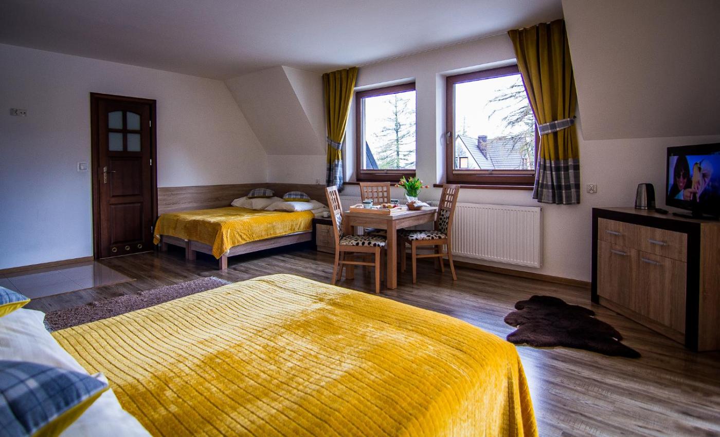 Pokój Czteroosobowy z balkonem. This quadruple room features a private bathroom, a wardrobe and an electric kettle. The unit offers 3 beds. Pokój Czteroosobowy - 4 osobowy. ;