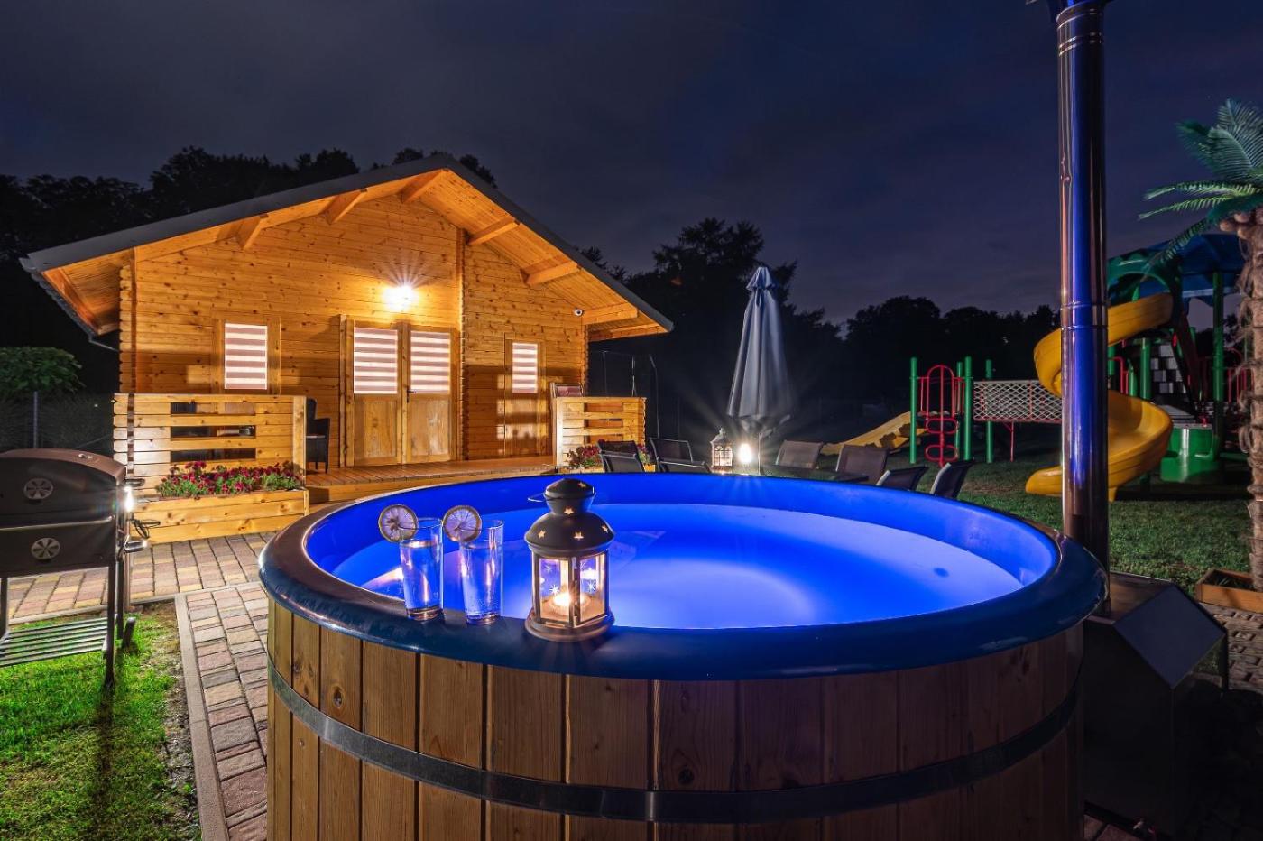 Na terenie obiektu Nocleg Zator Domki Paradise Pod Palmami znajduje się plac zabaw i sprzęt do grillowania.